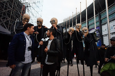 The project also integrated a connection to the educational community and local artists, in the ambit of Macao International Parade programme, through a Props Workshop approaching the Mask and it's design using Paper as its main basis, and the Lecture STREET PRESPECTIVES presented to a group of young students from Macao Music Academy of Arts, sharing artistic approaches developed by the company to public and non-conventional spaces.